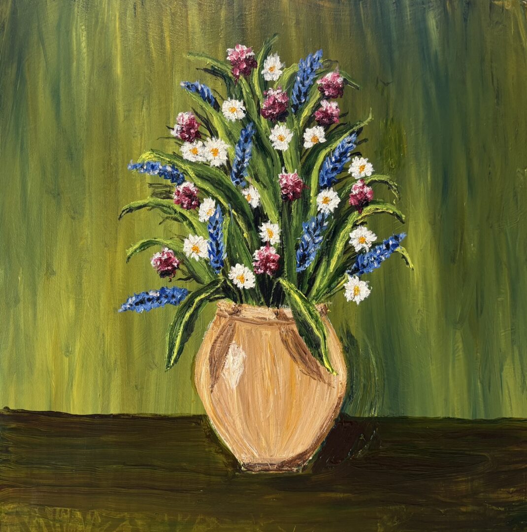 Blomstervase. 3 måla med munnen av meg.